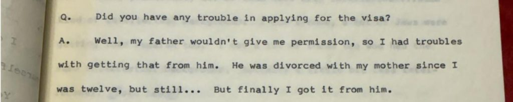 „Odpoveď: No, môj otec mi nedal povolenie, takže som mal problém ho od neho získať. Bol rozvedený s mojou matkou od mojich dvanástich rokov, ale aj tak… Ale nakoniec som ho od neho dostal.“